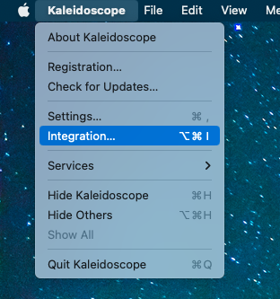Abre Kaleidoscope y presiona el menú Kaleidoscope > Integration…